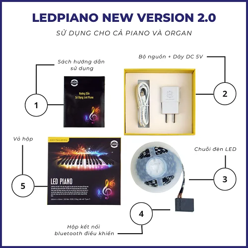 Một bộ sản phẩm LED Piano sẽ bao gồm các thiết bị sau đây: