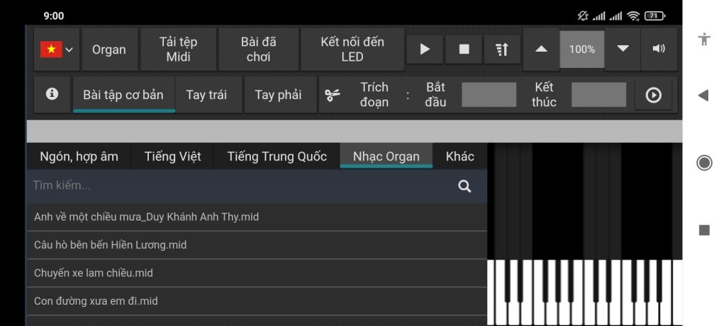 Mở app ở màn hình chính, chọn Bài tập cơ bản ở bên trái phía dưới biểu tượng ngôn ngữ. Có rất nhiều bài tập trong kho nhạc hàng trăm bản nhạc của LED Piano. Sau khi đã chọn một bài, hãy bắt đầu việc luyện tập.